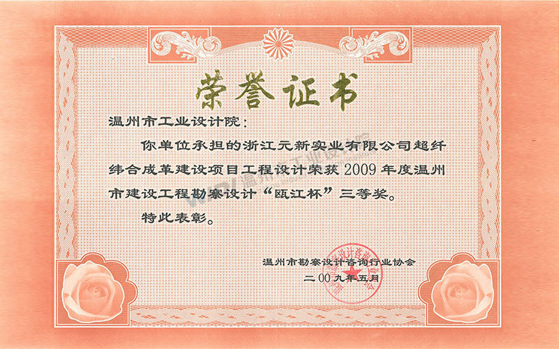 浙江元新實(shí)業(yè)有限公司超纖維合成革建設(shè)項(xiàng)目工程設(shè)計(jì) 甌江杯三等獎
