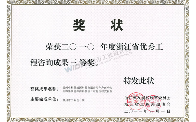 溫州中科新能源科技有限公司年產(chǎn)10萬噸生物柴油能源高科技項(xiàng)目 甌江杯一等獎