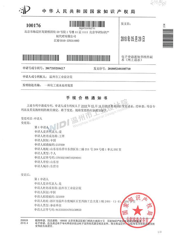 一種化工廢水處理裝置手續(xù)合格通知書 (3)