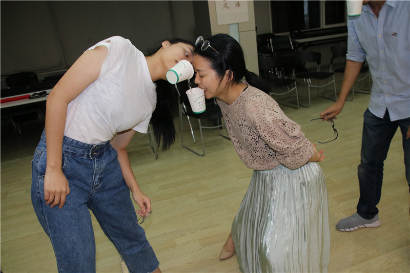 活動(dòng)在勵(lì)志歌曲“追夢(mèng)赤子心”的音樂聲中拉開序幕。大家在指導(dǎo)老師的引領(lǐng)下,分成二個(gè)小組共同進(jìn)入“大風(fēng)吹”“請(qǐng)讓我為你按摩一下下”“優(yōu)點(diǎn)轟炸”“銜紙杯傳水”